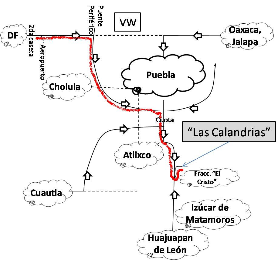 | Indicaciones rapidas para llegar: - Desde Puebla. (30 min) Hacia Atlixco, tomar libramiento hacia Izucar de Matamoros. Junto a Fraccionamiento "El Cristo" - Desde Mexico D.F. Por la autopista pasar la 2da caseta y la salida al aeropuerto, veras señalamientos hacia Cholula y Atlixco son para tomar el periferico de Puebla. Por el Periferico pasar salidas de Cholula y la Libre a Atlixco; seguir y tomar salida a Atlixco cuota. Siguir hacia Atlixco, al final tomar libramiento a Izucar de Matamoros, Al termino de la zona de restaurantes vuelta en U en el Fraccionamiento "El Cristo" y junto a este. - Desde Huajuapan Hacia Izucar de Matamoros, y seguir hacia Atlixco. Junto a Fracionamiento "El Cristo" - Desde Oaxaca Llegar primero a Puebla - Desde Cuernavaca Desde Tepoztlan, hacia Izucar de Matamoros. Tomar desviacion de cuota Cuautla - Puebla, al final hacia Atlixco y despues Libramiento a Izucar de Matamoros |
